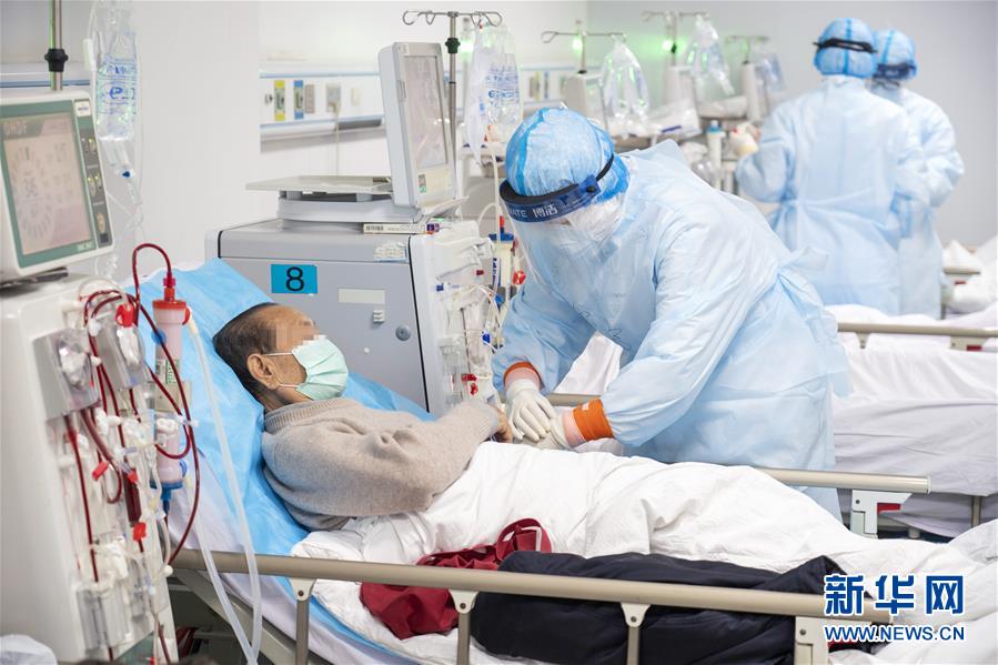 3月21日,在武漢市漢口醫(yī)院腎內(nèi)科血液透析室,醫(yī)護人員為處于新冠肺炎康復(fù)期的尿毒癥患者做血液透析。新華社記者才揚攝